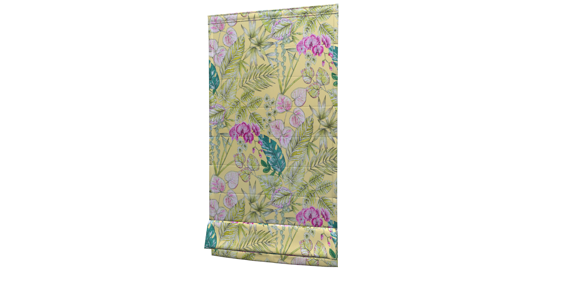Вулична тканина з великим жовтим листям і рожевими бутонами. Ширина тканини 160 см, набирається заввишки з запасом + 10 см.